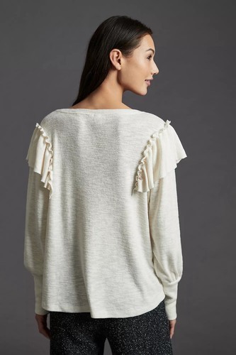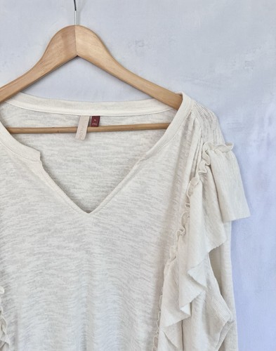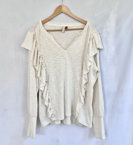 Anthropologie Pilcro Cozy Ruffle Popover XL VNeck Ivory Cream Top Women EUC
