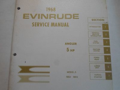 1968 EVINRUDE Service Repair Shop Manual 5 CV Angler 5802 5803 Boat