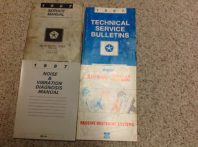 1987 Dodge Ramcharger Diario per ruote posteriori e DW 150/250/350 Set manuale di servizio di fabbrica.