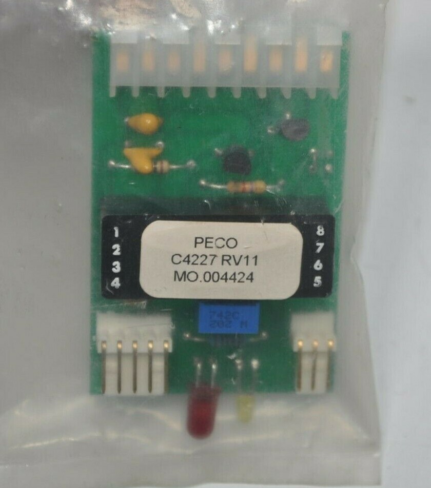 PECO Photocell PCB Circuit board Modello# C4227 RV11 Nuovo in borsa. Questi erano ricambi da una grande azienda di cibi / conserve. E stato sugli scaffali per anni e ha raccolto un po 'di polvere sulla confezione.