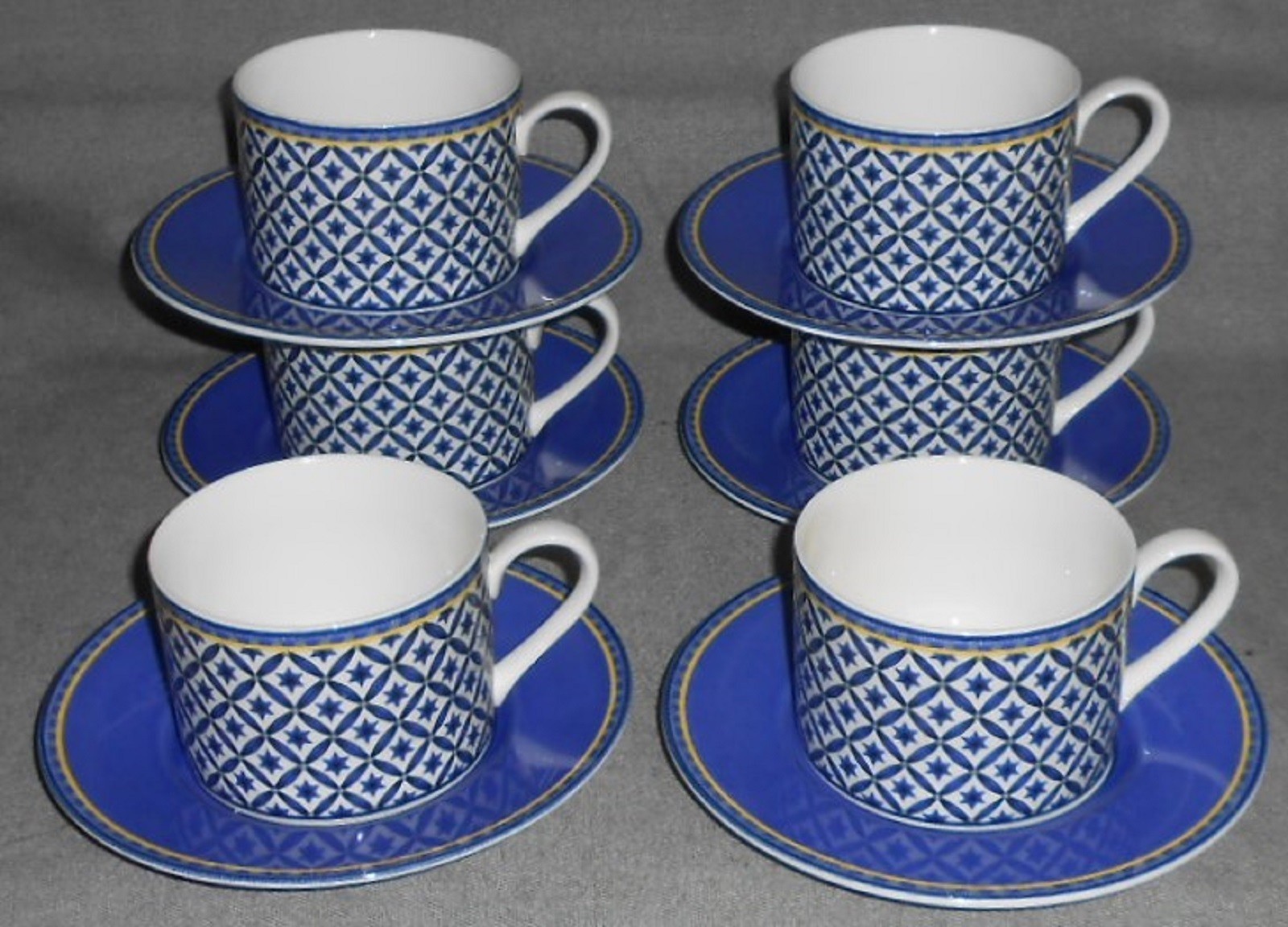 Set (6) Victoria & Beale WILLIAMSBURG PATTERN Cups and Saucers