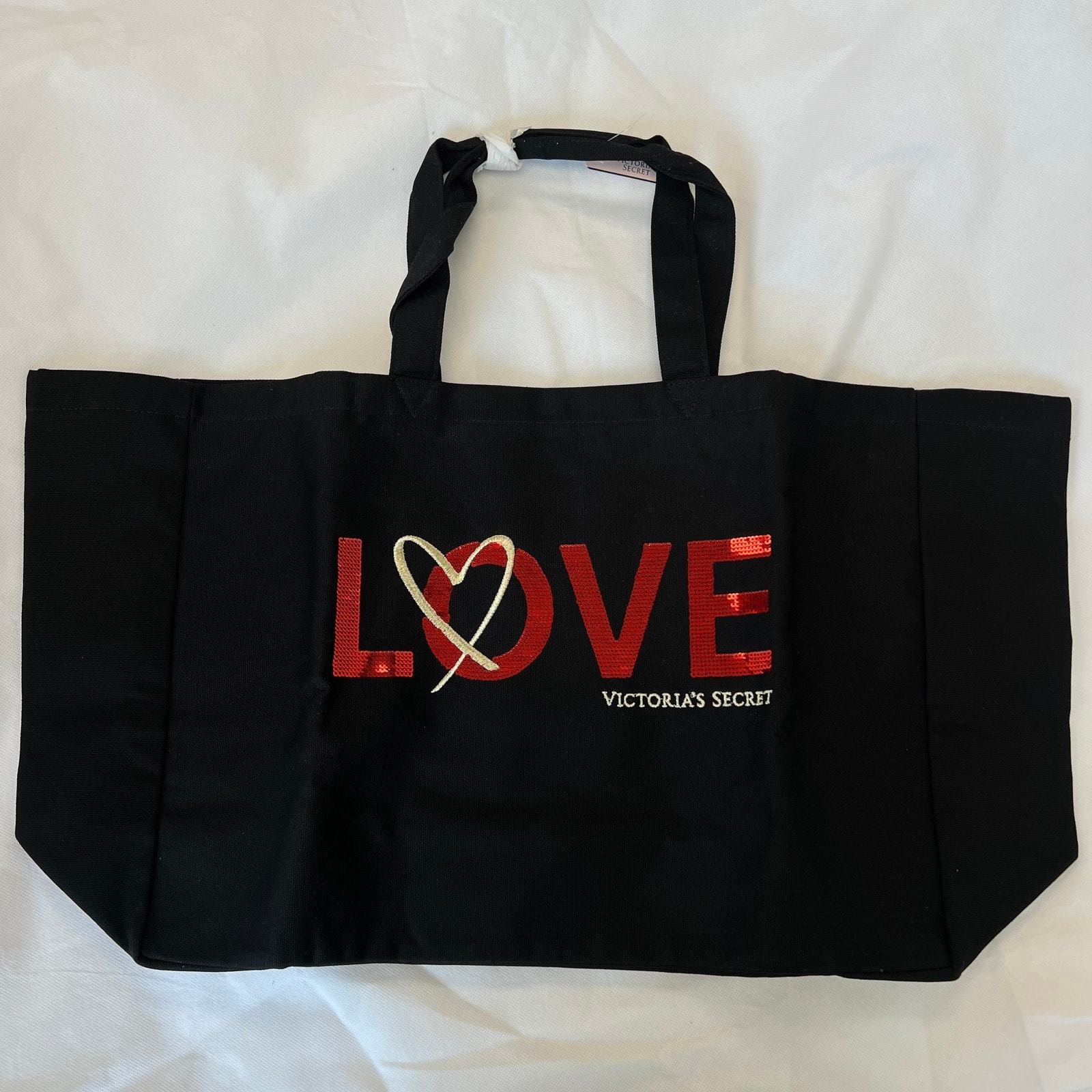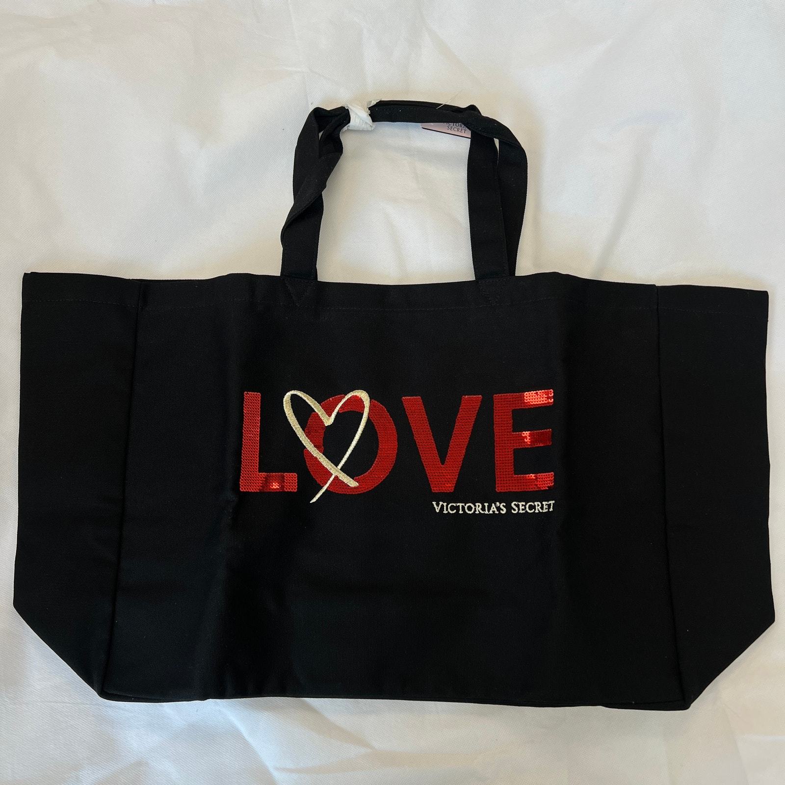 Victoria?s Secret Tote Bag Black Red Sequin Love Bling Rhinestone Carryall Weekender