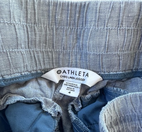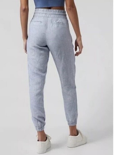 Athleta Pants Blue 100% Linen Cabo Linen Jogger Pants Size 4 Women Coastal Beach