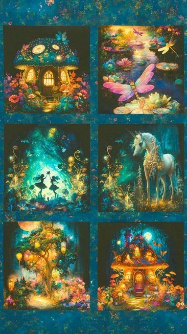 24" X 44" Panel Night Fable Magic Fairy Mushroom Cotton Fabric Panel D778.05