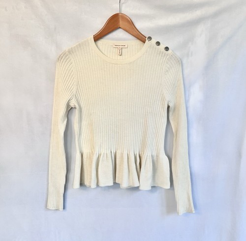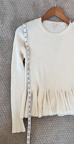 NWOT Rebecca Taylor Peplum Sweater MEDIUM Ivory Ribbed Wool Alpaca Blend Women