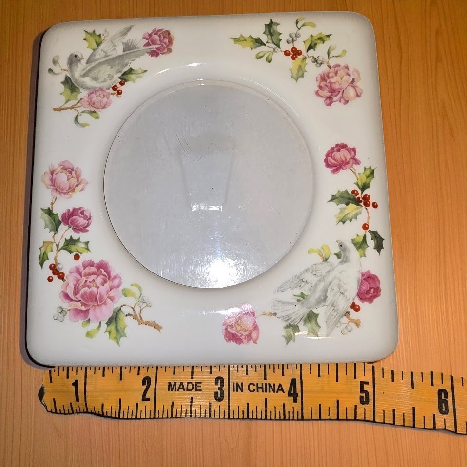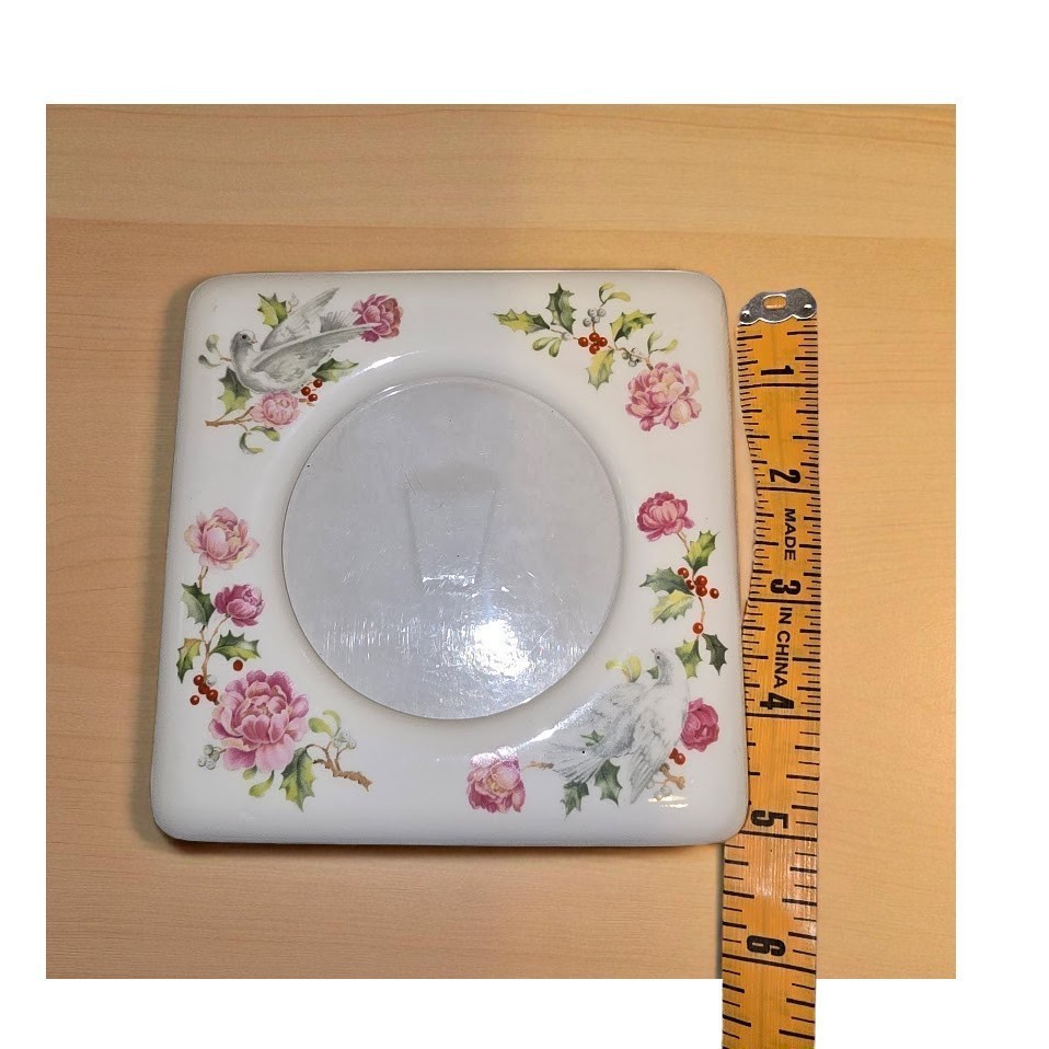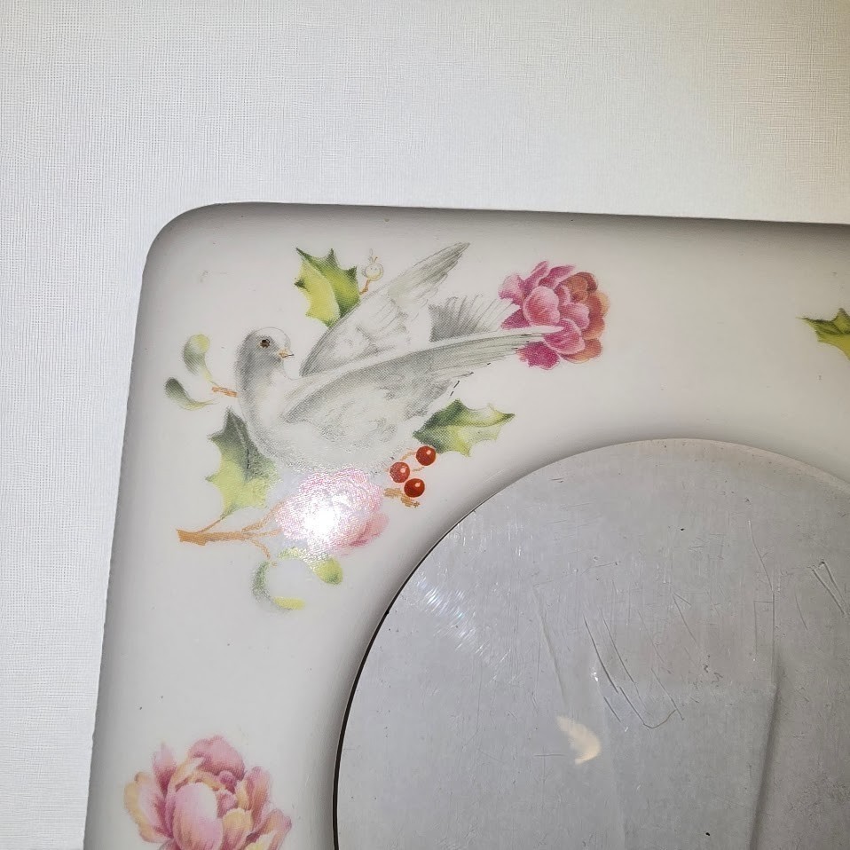 ? Vintage porcelain standing photo frame with dove floral and holly motif
