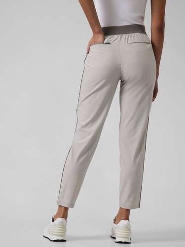 Athleta Brooklyn Mid Rise Ankle Pant SIZE 6 Light Travel Gray Pinstripe EUC