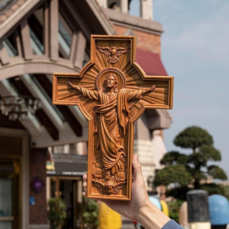 ?Handmade Wood Cross? This crucifix wall cross made of European beech wood is handcrafted by the best craftsmen, with clear grain and vivid carved patterns