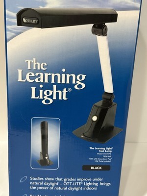 Illuminate your workspace with the OTT-LITE Learning Light Vision Saver Plus, a modern desk lamp designed to provide optimal lighting for your everyday tasks. With a sleek black finish and a versatile white shade shaped like a rectangle, this lamp complements any office or study area with its adjustable and flexible arm, allowing you to direct the light precisely where you need it.