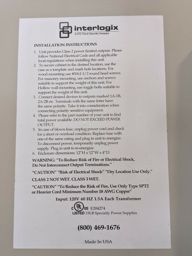 Interlogix CCTV Sécurité Contrôle Armoire 4 Tdb-B Transformers Fusible Sortie