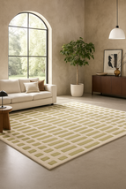Hand-Tufted Wool Rug – Grid Pattern in Olive Green and Ivory