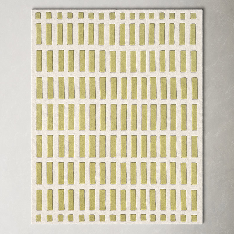 Elevate your interiors with this eye-catching hand-tufted wool rug featuring a minimalist grid design in a soothing olive green hue on an ivory base. Thoughtfully crafted by skilled artisans, this rug adds structure and warmth to any room — blending seamlessly with contemporary, Scandinavian, and mid-century decor styles.