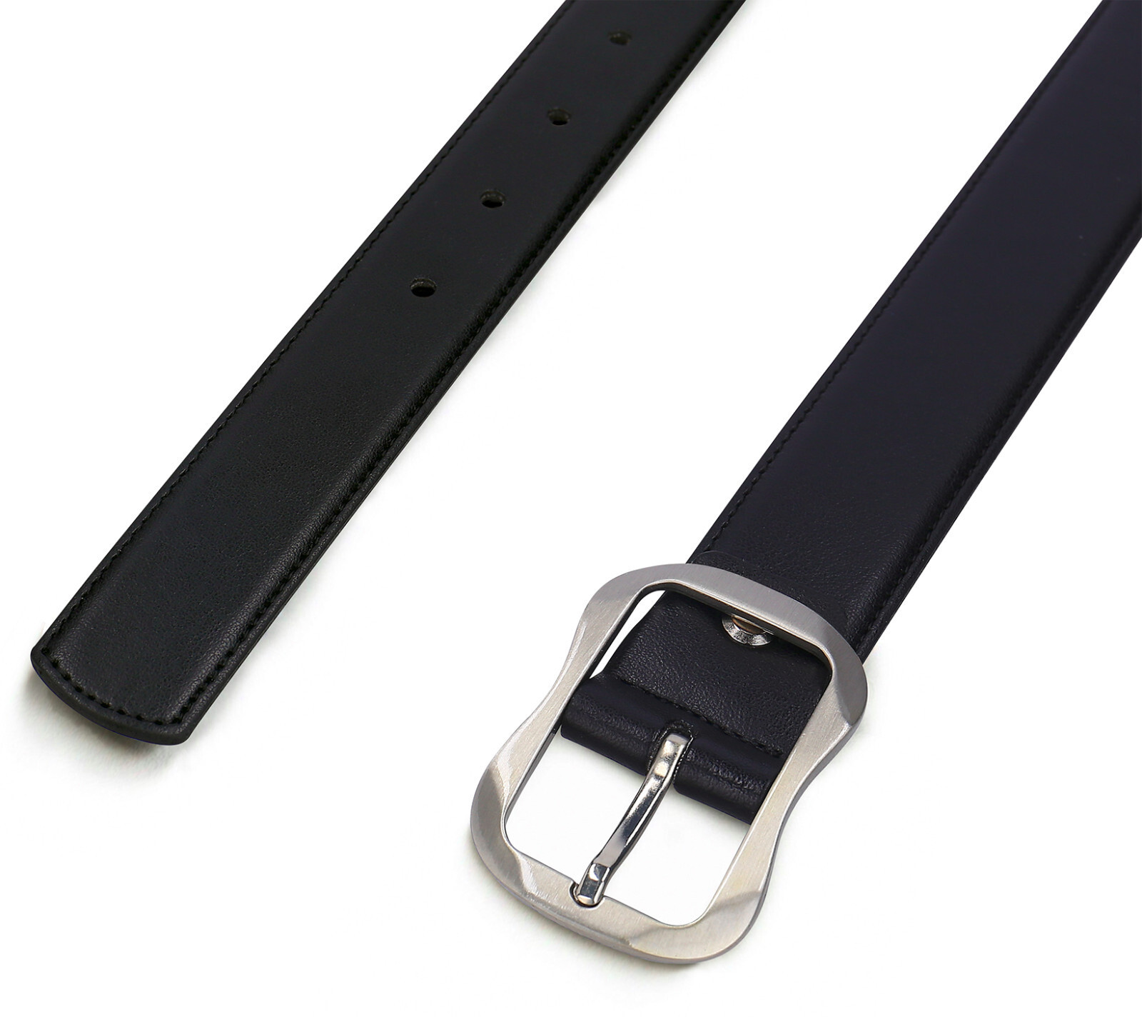 Womens vegan belt black apple skin fashion elegant curved buckle slim square tip
