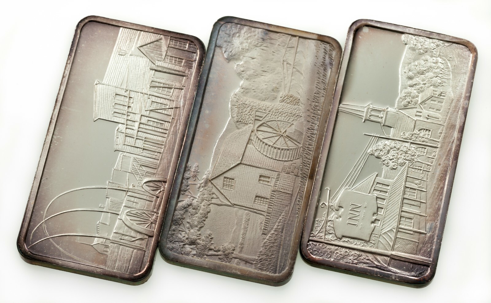 1975 Hamilton Mint America The Beautiful 1oz Silver Art Bars Lot de 3 bars