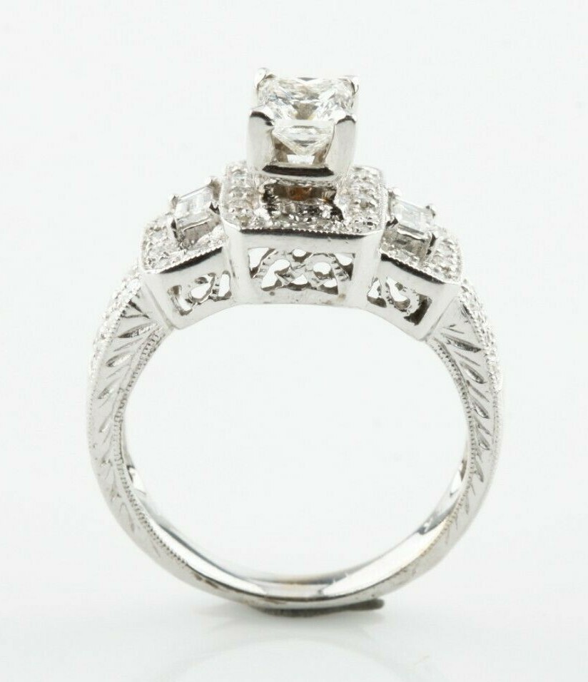 Bague solitaire en or blanc 14 carats avec diamants de 0,50 ct et pierres d'accent Taille 6,75
