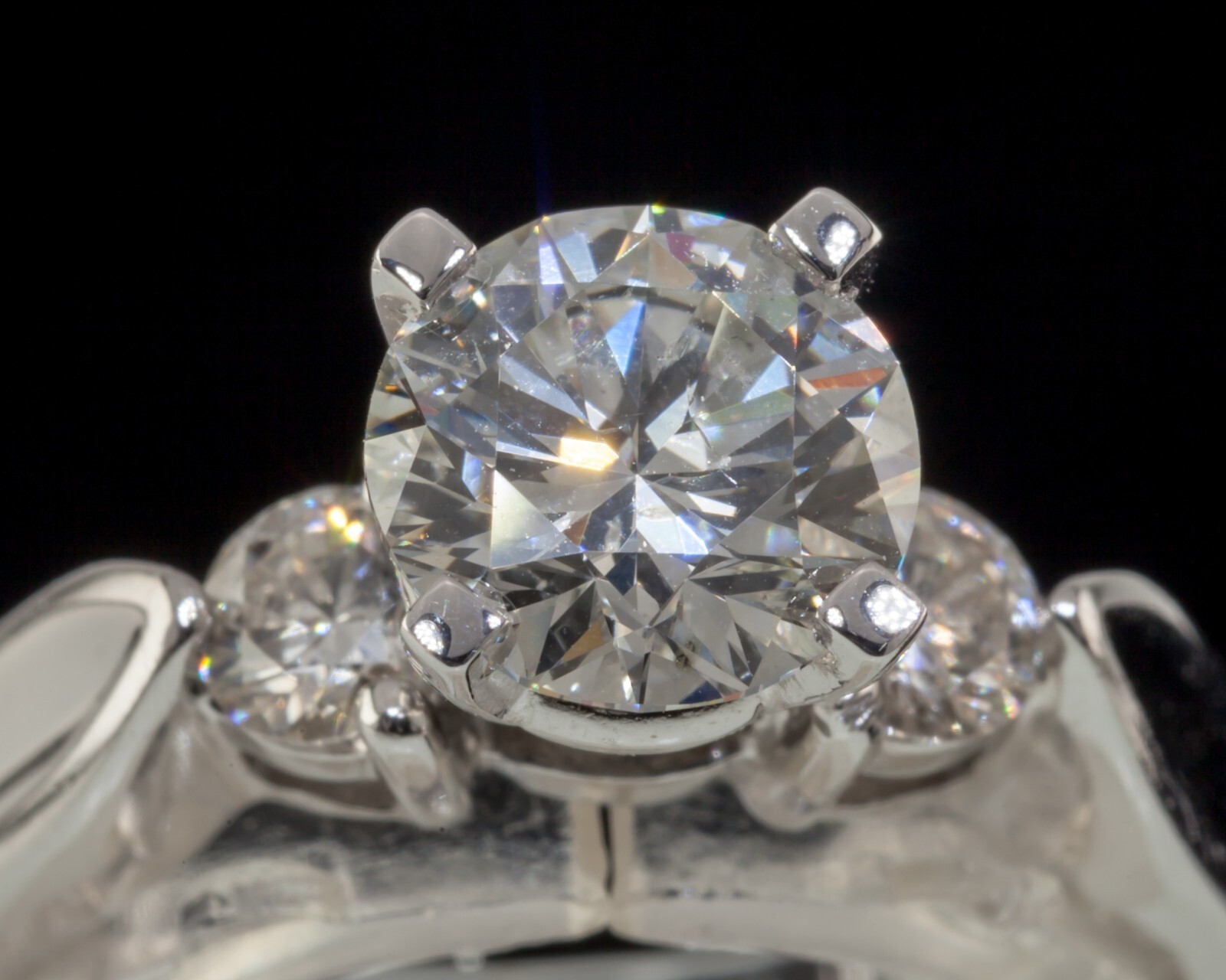 Les pierres laterales sont d'environ 0,20 carats chacune (0,40 total), purete SI, couleur GH.