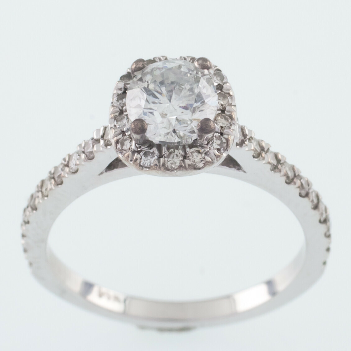 Anneau de solitaire diamant en or blanc 14K avec accents TDW 1,10 ct Taille 3,75 avec certificat