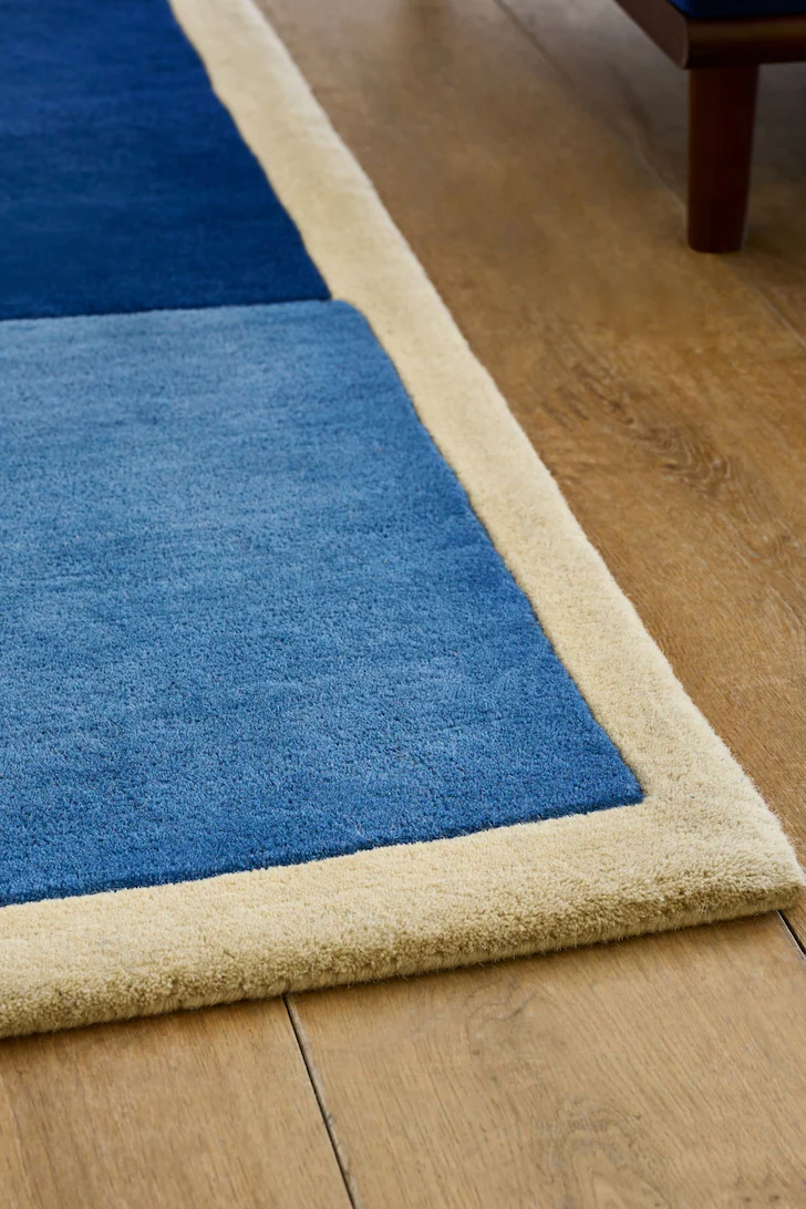 Modern Abstract Wool Rug – Blue, Navy & Ivory