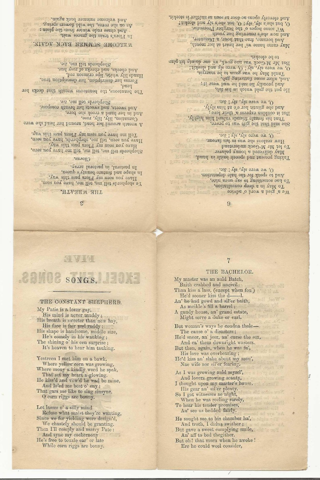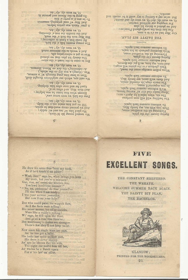 FIVE EXCELLENT SONGS: Rare Original Chapbook Circa 1850 Published in Glascow