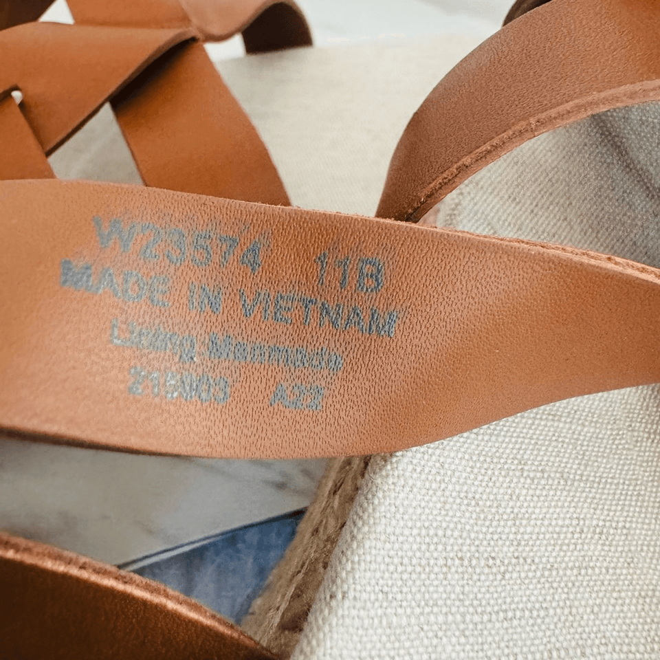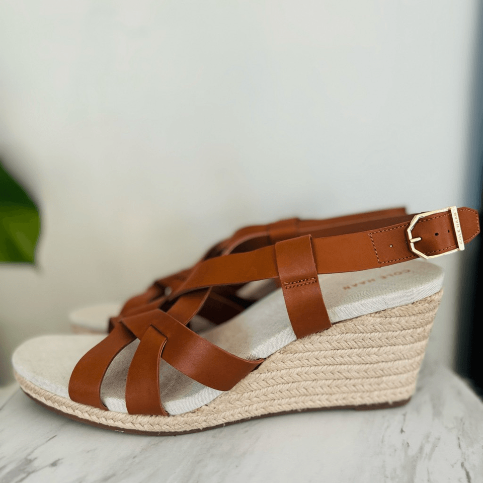 Cole Haan Crystal Wedge Leather Espadrille Strap Sandal, Brown, Size 11, NWOB