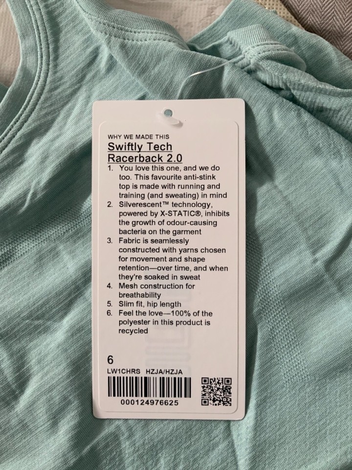 LULULEMON SWIFTLY TECH RACERBACK 2.0 ~ HAZY JADE ~ 6 ~ NWT~ FREE USPS SHIP