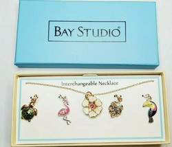 Bay Studio Interchangeable Necklace W 5 Pendants Turtle Flamingo Toucan Flowers