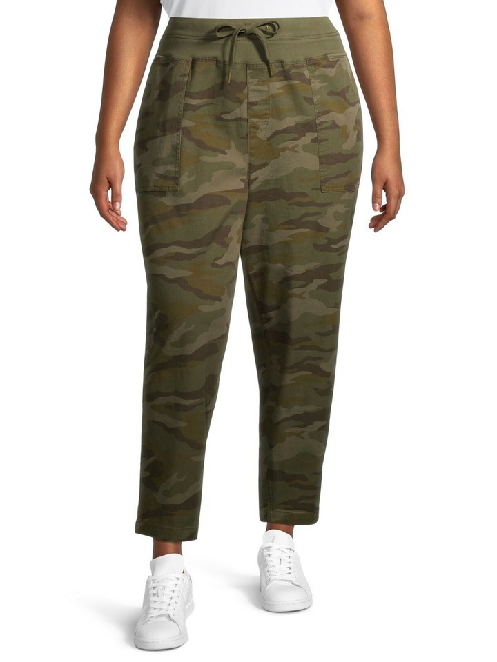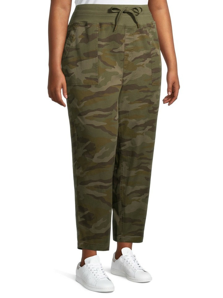 Terra & Sky Women's Plus Cargo Utility Capri Pants Size 1X (16-18W) Green Camo
