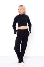 Teen girls? tracksuit made of ribbed knit ? a stylish, comfortable, and modern choice for youth. The set includes a cropped long-sleeve top with long sleeves and a high collar, and wide loose-fitting pants with an elastic waistband. The ribbed texture adds a trendy touch, while the soft, stretchy fabric ensures comfort and freedom of movement. The simple design with decorative pleats on the top makes the tracksuit expressive and fashionable. Perfect for school, walks, meetings, or relaxing. Easily combined with t-shirts, tops, or hoodies. A practical choice for teens who value style and comfort.