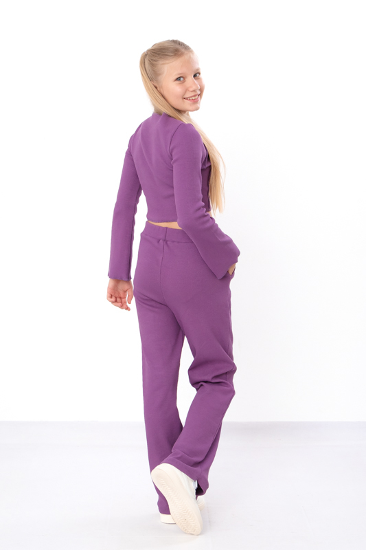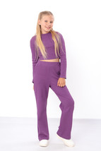 Teen girls? tracksuit made of ribbed knit ? a stylish, comfortable, and modern choice for youth. The set includes a cropped long-sleeve top with long sleeves and a high collar, and wide loose-fitting pants with an elastic waistband. The ribbed texture adds a trendy touch, while the soft, stretchy fabric ensures comfort and freedom of movement. The simple design with decorative pleats on the top makes the tracksuit expressive and fashionable. Perfect for school, walks, meetings, or relaxing. Easily combined with t-shirts, tops, or hoodies. A practical choice for teens who value style and comfort.