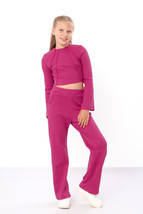 Tracksuit (girls) – Ribbed Knit, Cropped Top & Wide Pants,, Any season, Nosi...
