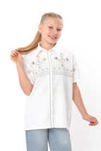 Teen girls? short-sleeve shirt ? the perfect choice for summer. The linen-viscose fabric provides lightness, breathability, and comfort even in hot weather. The natural material feels pleasant on the skin, and the loose fit does not restrict movement, which is important for active teenagers. The shirt pairs perfectly with jeans, shorts, skirts, or lightweight trousers, making it suitable for school, walks, travel, and leisure. It can be worn buttoned up or open over a top. Practical, stylish, and versatile, it easily fits into any summer wardrobe.