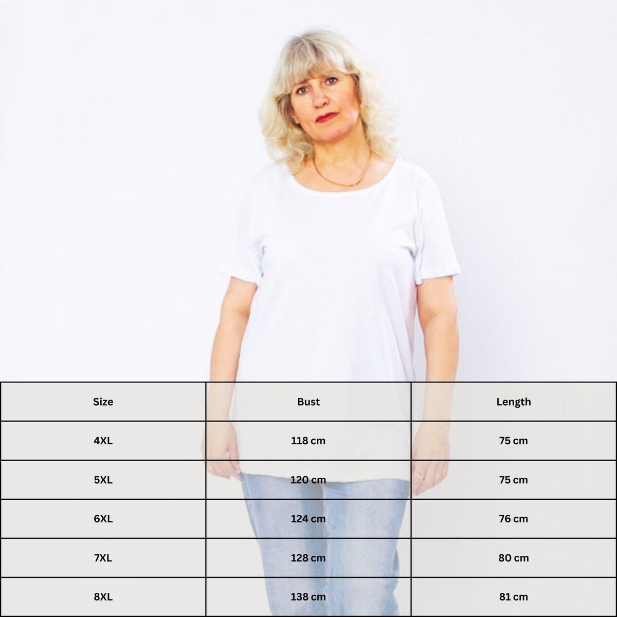 Size: 8XL, Bust: 138cm, Length: 81cm, Sleeve Length: 17cm