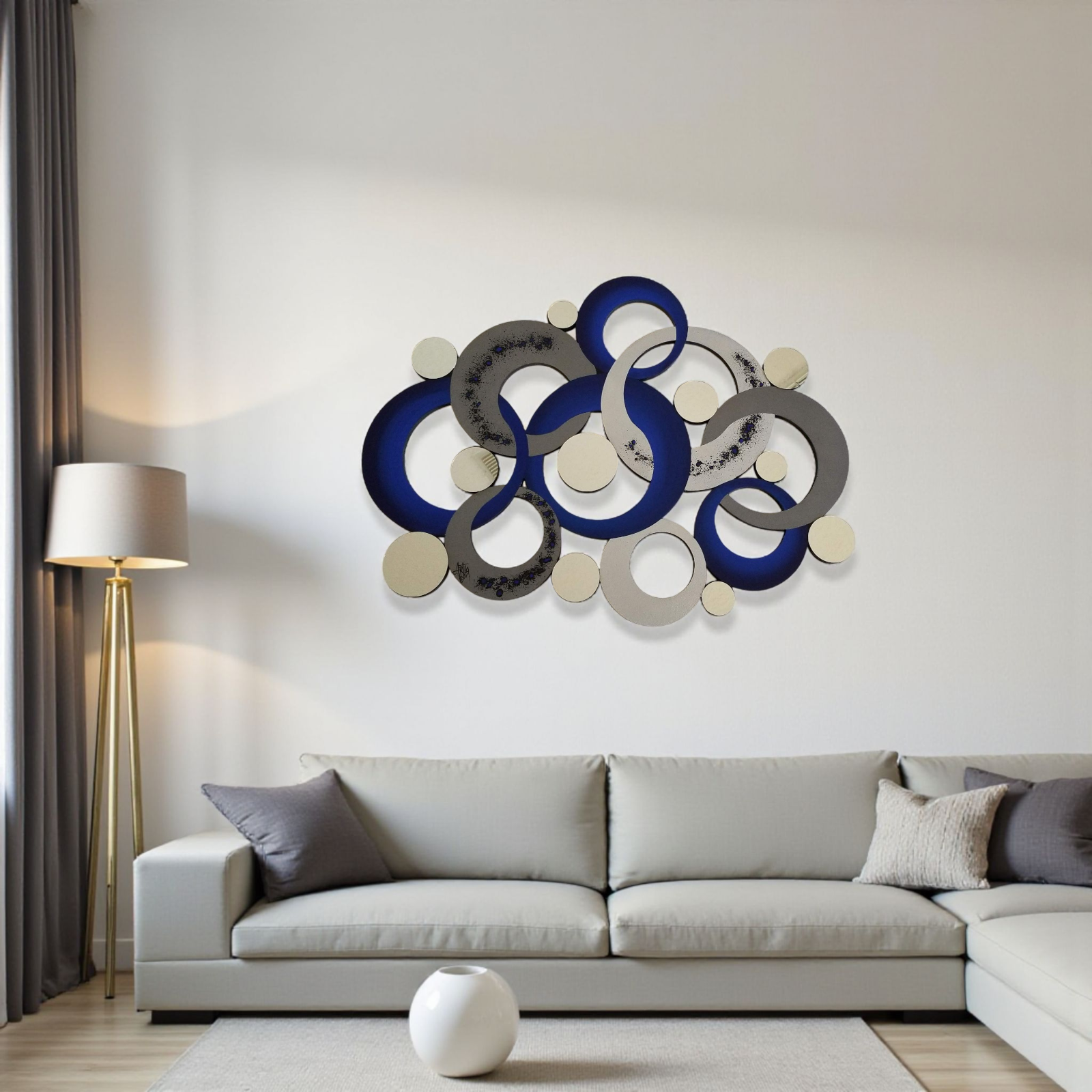 Cobalt Blue Mirror Circle Wood Wall Art by Alisa (29x22)
