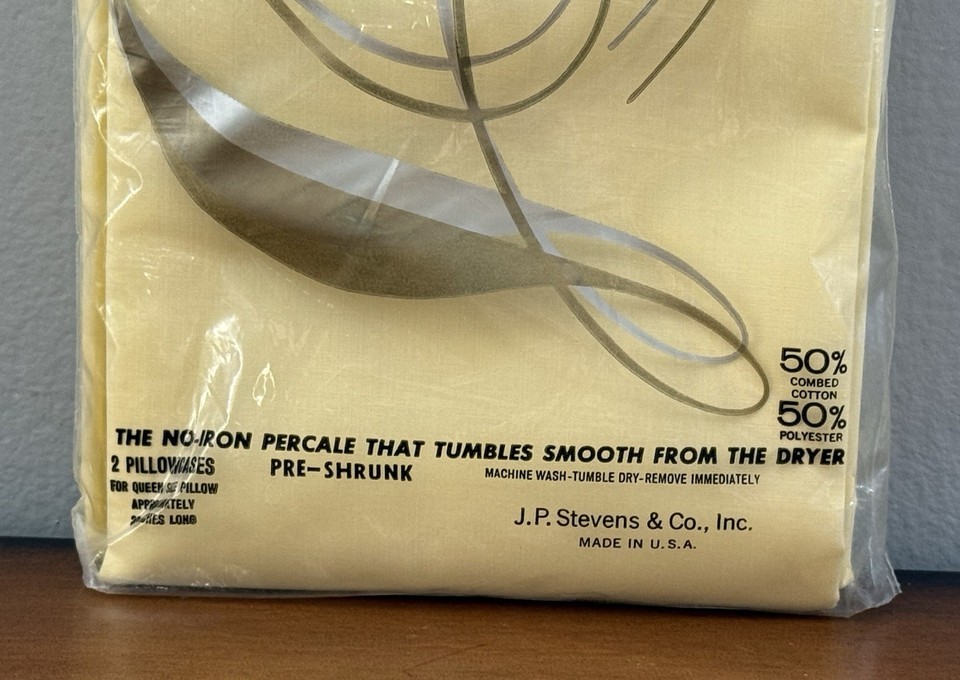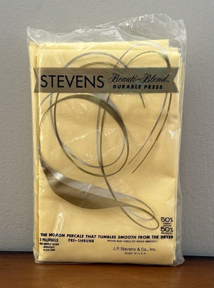 VTG 70s Stevens Beauti-Blend 50/50 Percale Two Pillowcases Buttercream Queen NEW