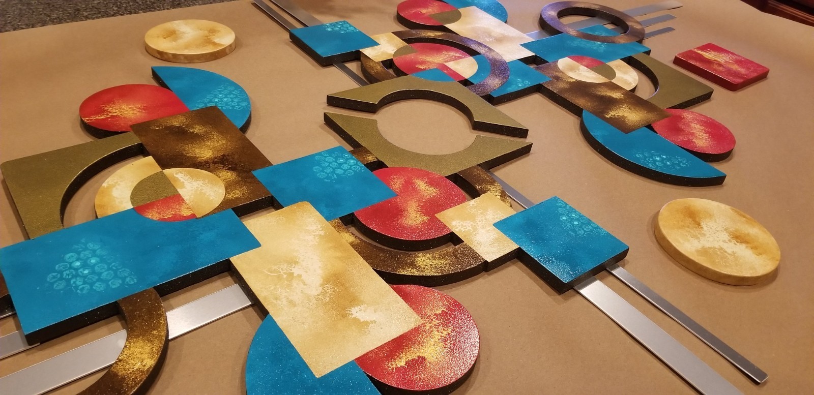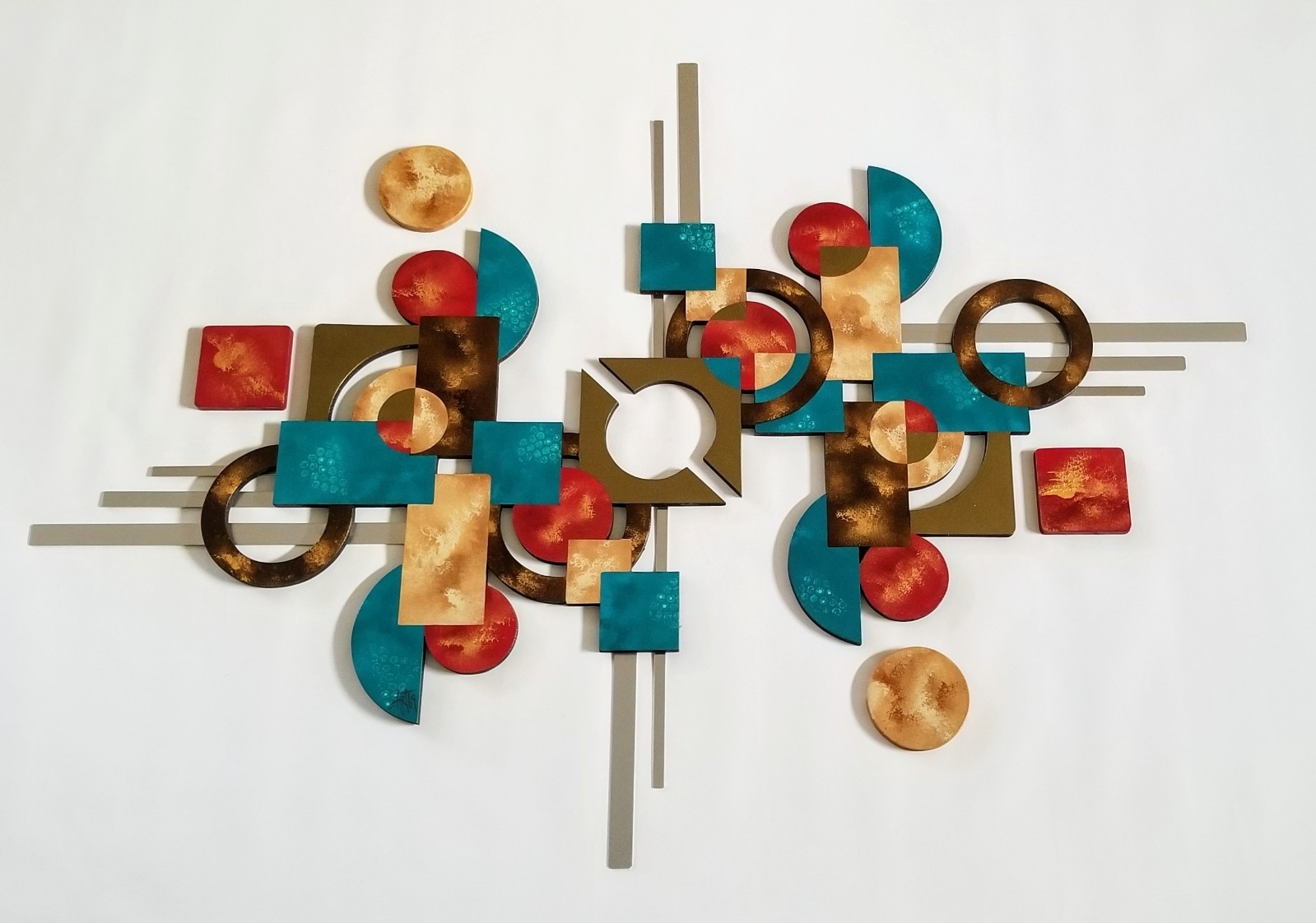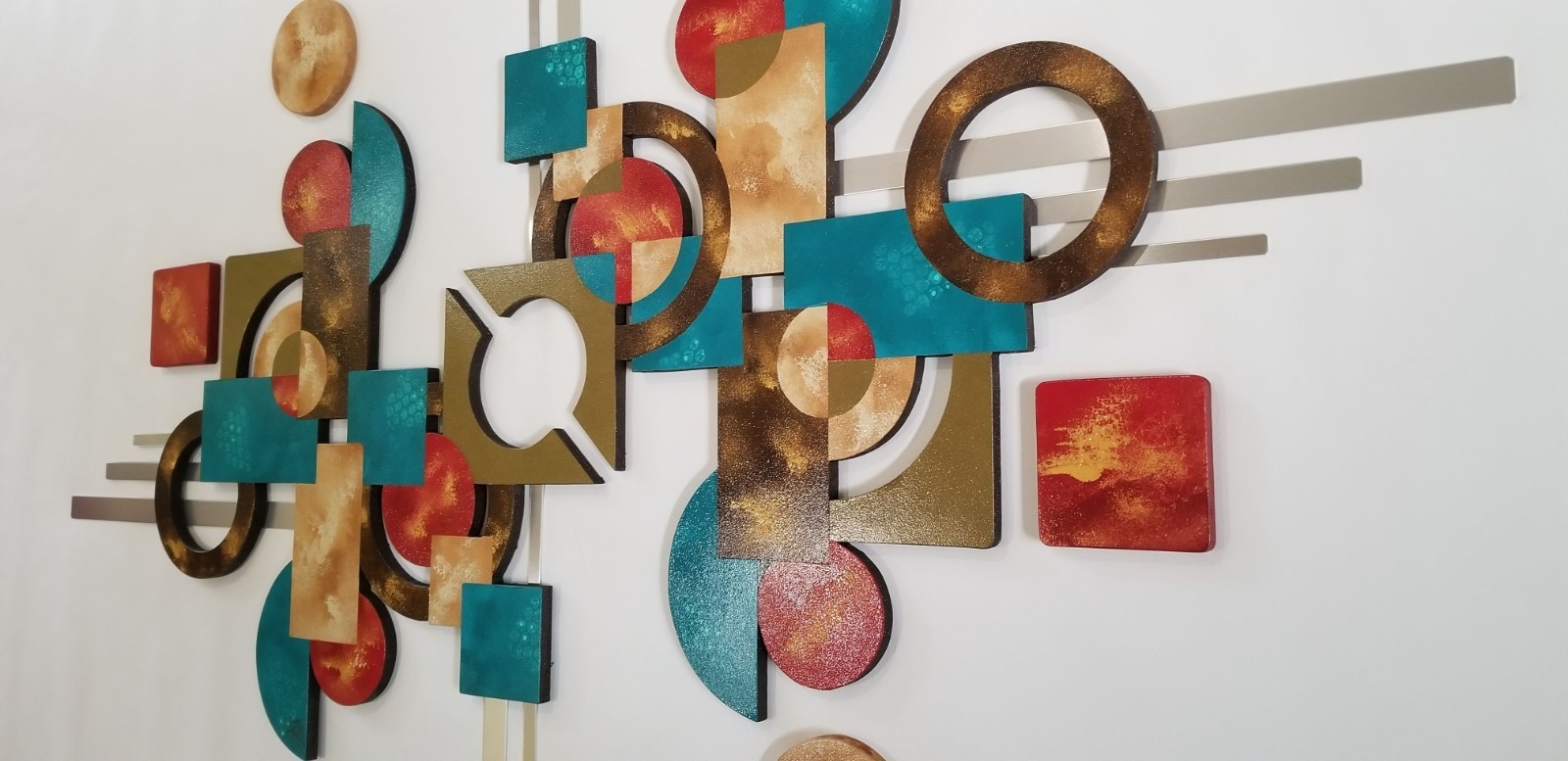 Wood & Metal wall art, Red Teal brown Contemporary decor 55x38 by Alisa