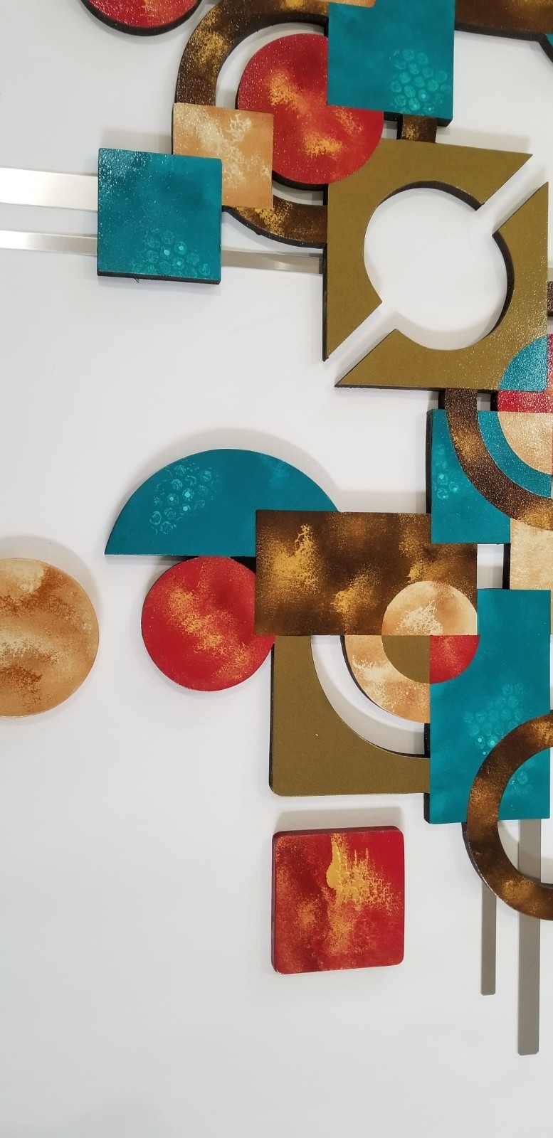 Wood & Metal wall art, Red Teal brown and similar items