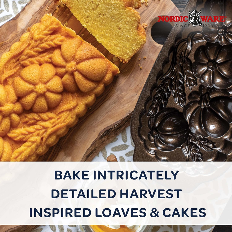 93448 Wheat & Pumpkin Cast Loaf Pan, 6 Cup Capacity, Bronze