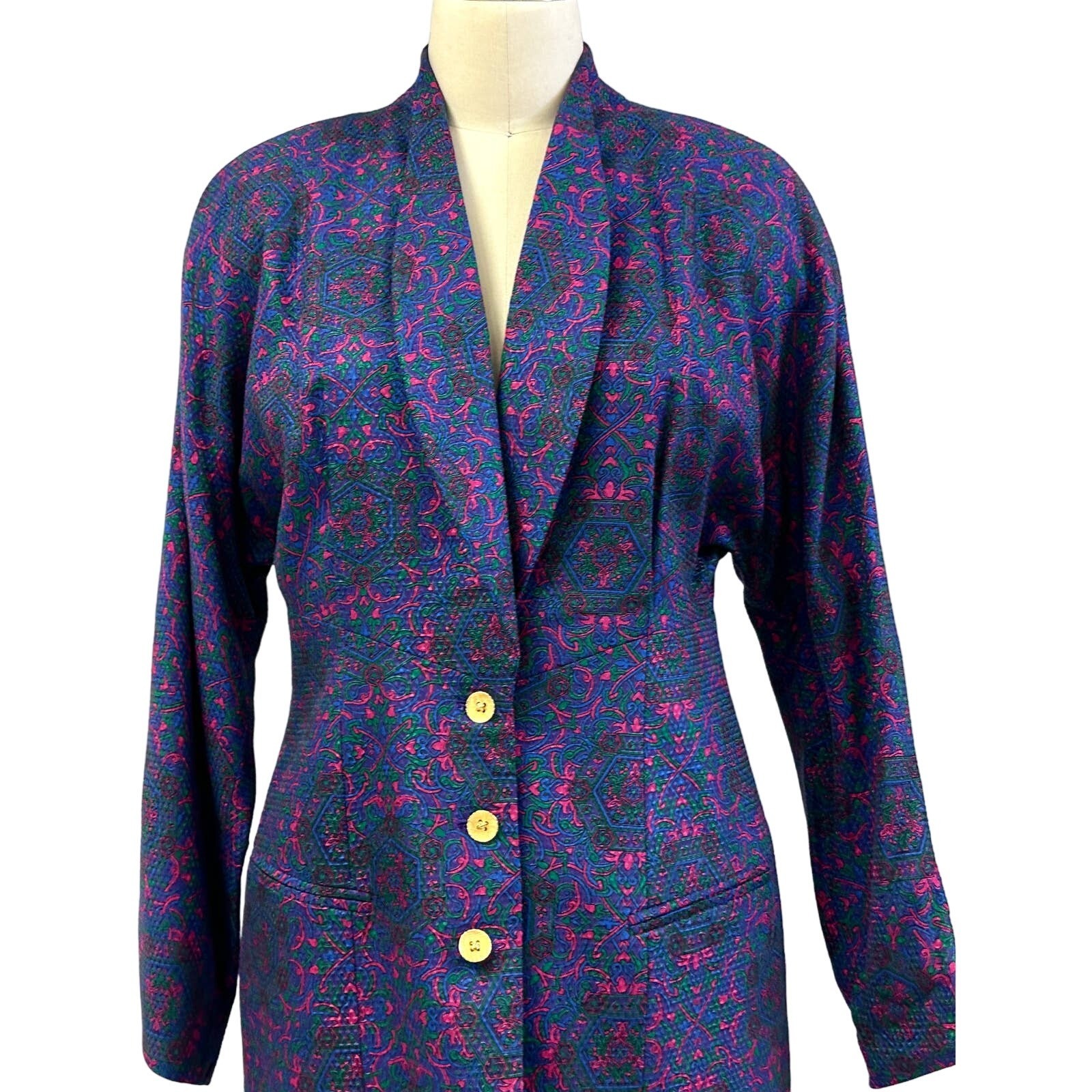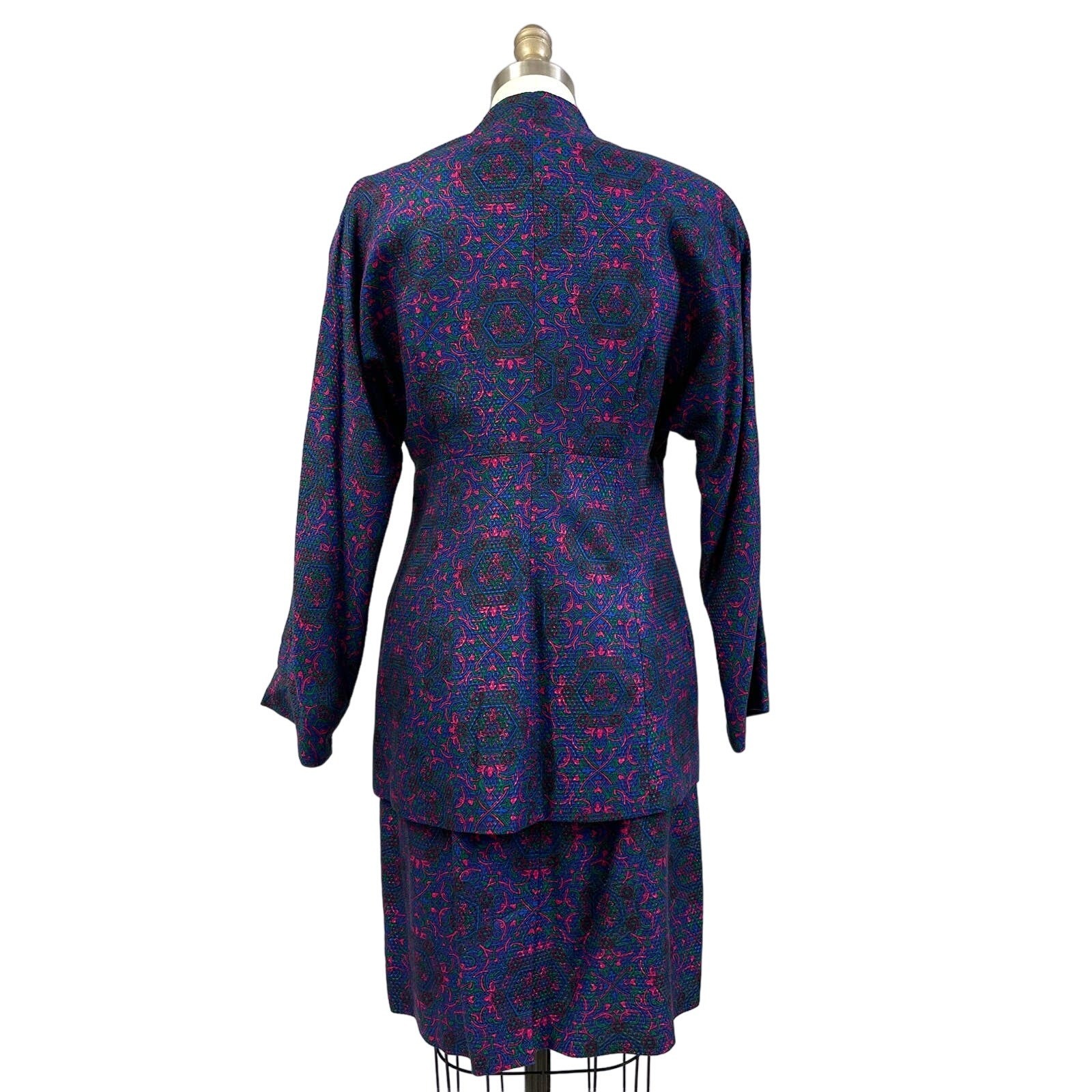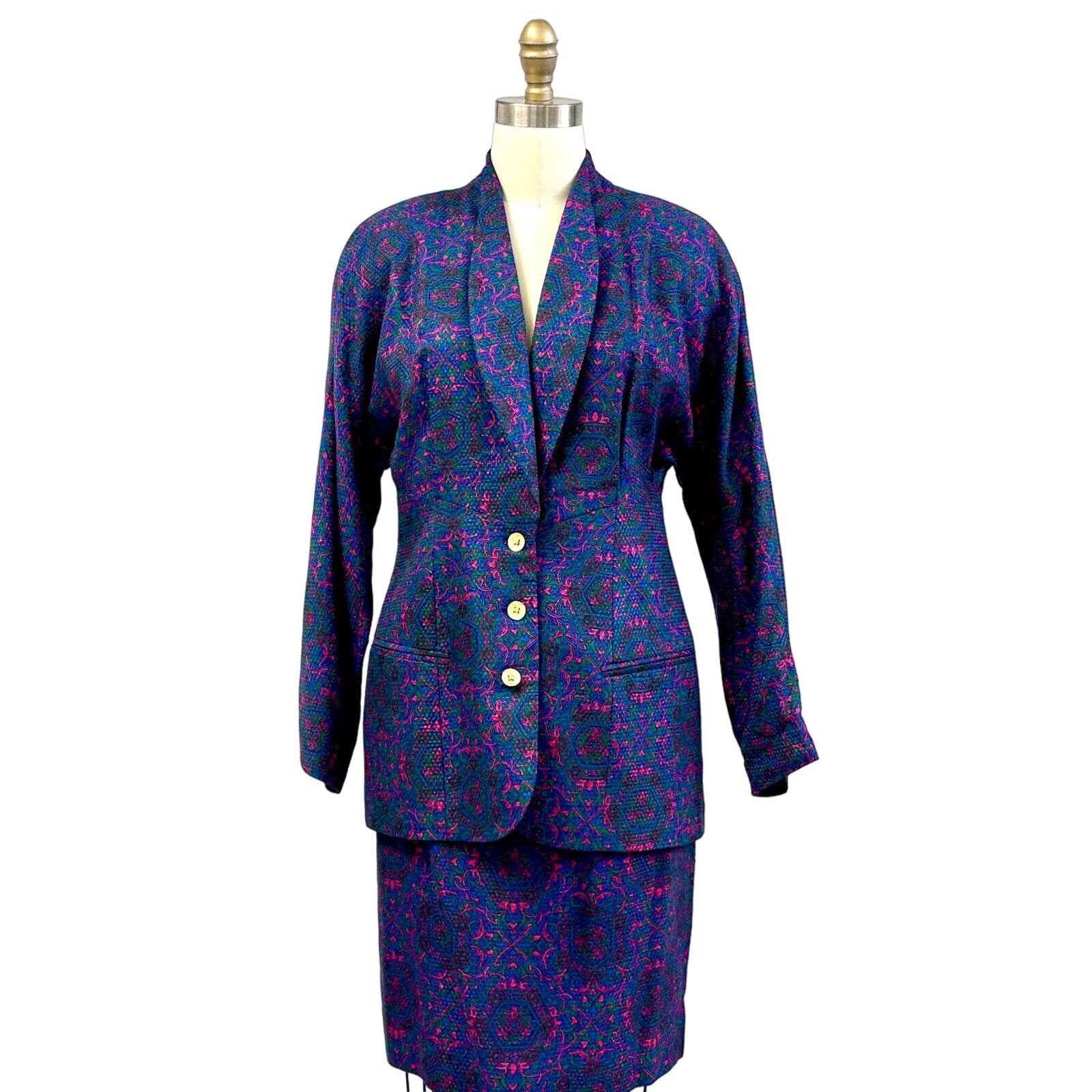 Austin Reed VTG 1980s Purple Power Suit Skirt Suit Dynasty Style Gold Buttons S