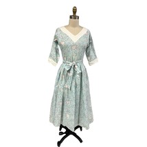 Laura Ashley VTG 1980s Pale Blue Floral Prairie Dress Romantic Cottagecore UK S