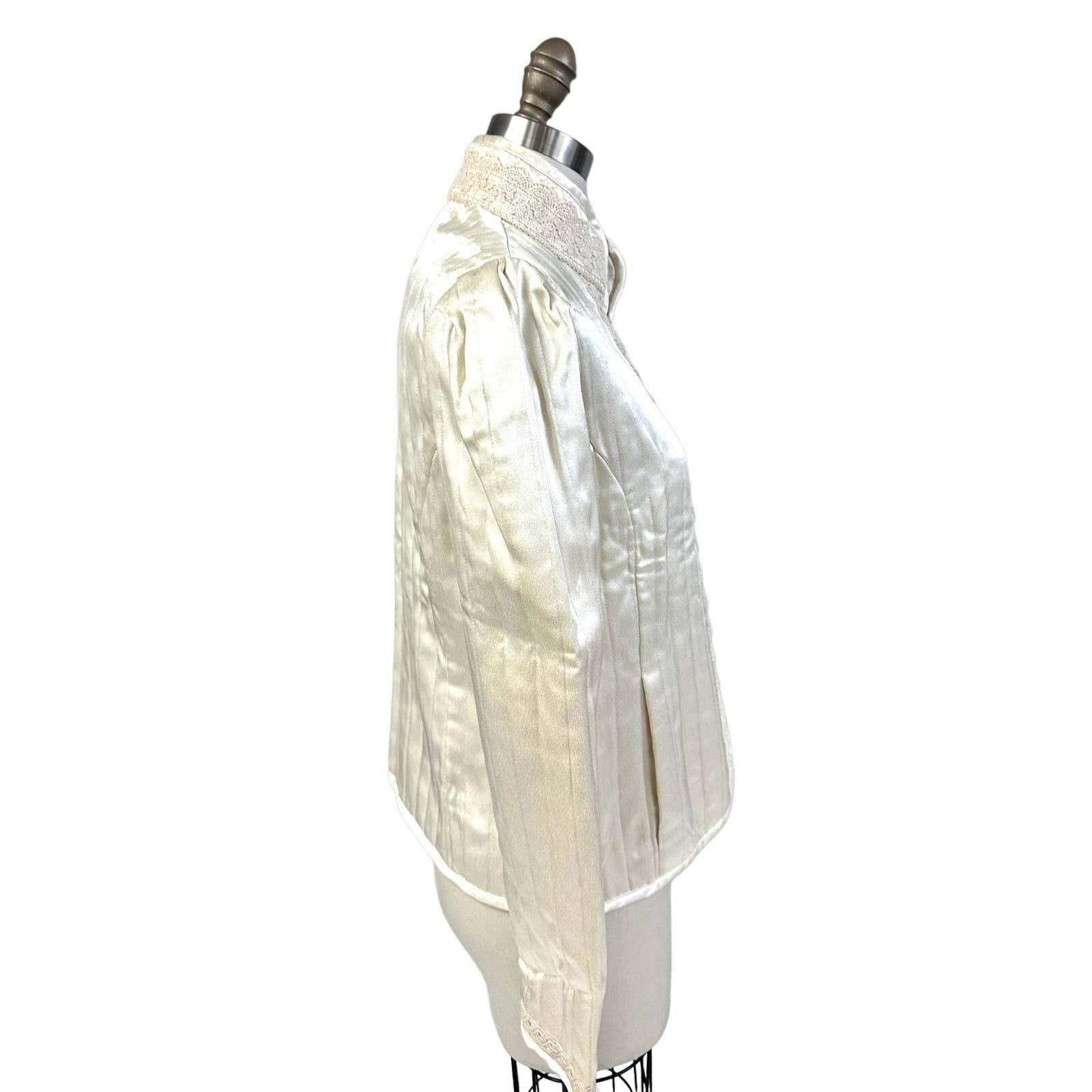 Jessica’s Gunnies VTG 70s Quilted Satin Lace Trim Jacket Retro Glam Cottagecore