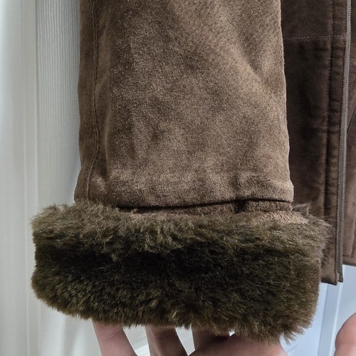 St Johns Bay Coat Womens Dark Brown Suede Leather Jacket Shearling Lined Sz M