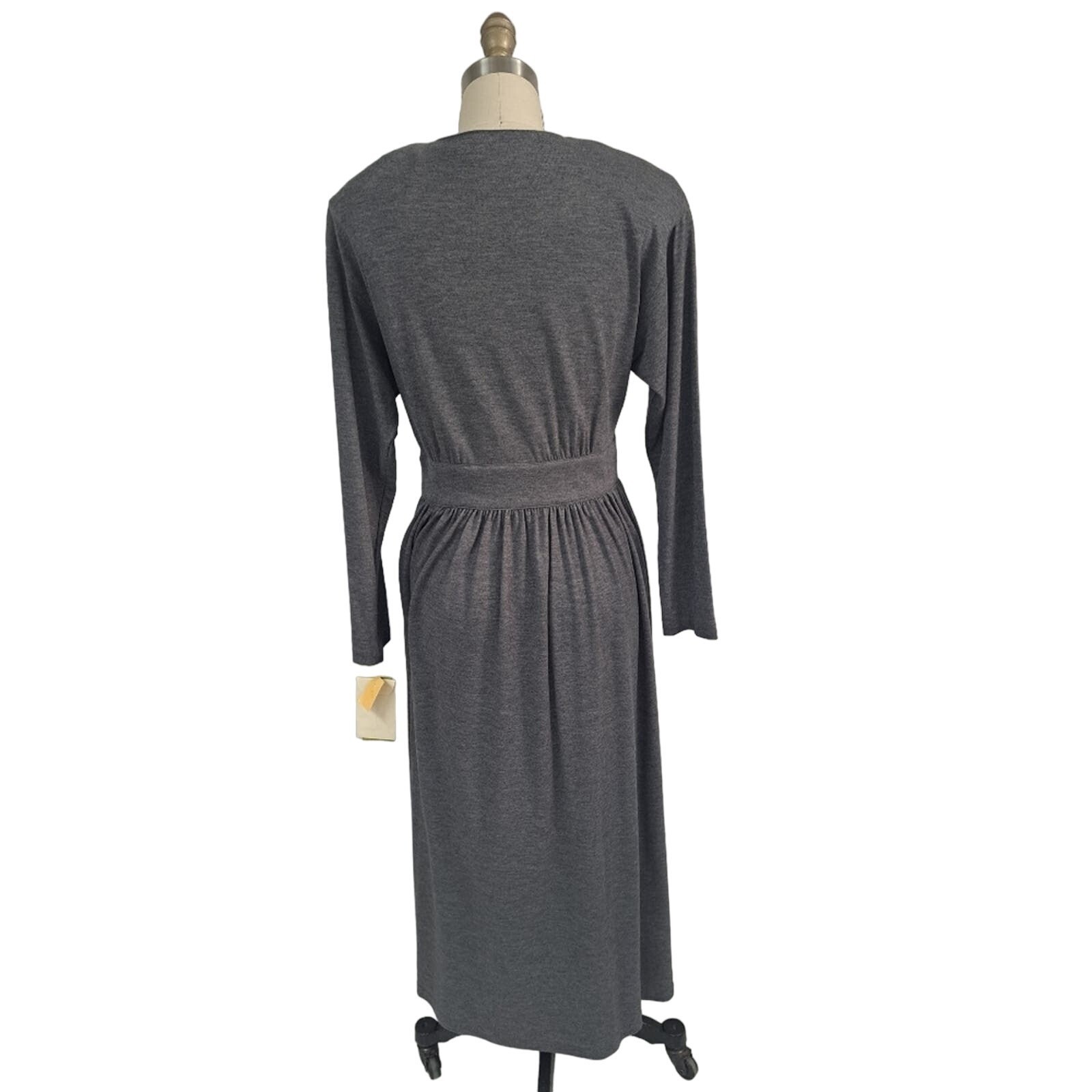 Liz Claiborne VTG 1980s Gray Midi Dress Wide Waistband NWT Secretary Core Sz M