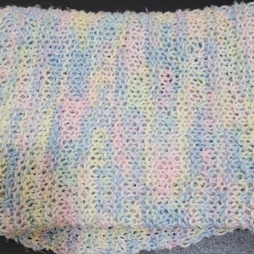 Vintage Handmade Crochet Baby Afghan Crib Blanket Soft Pastel Colors 46" X 37"