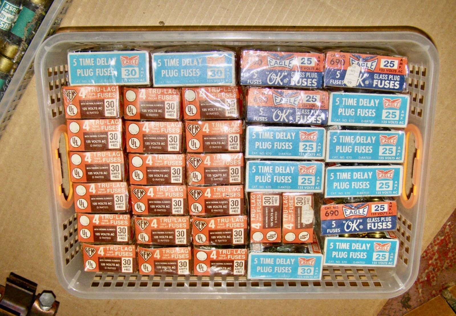 VINTAGE GIANT LOT-OVER 225 SCREW IN+PLUG IN FUSES-30amp,25amp,20amp,15amp,10amp+
