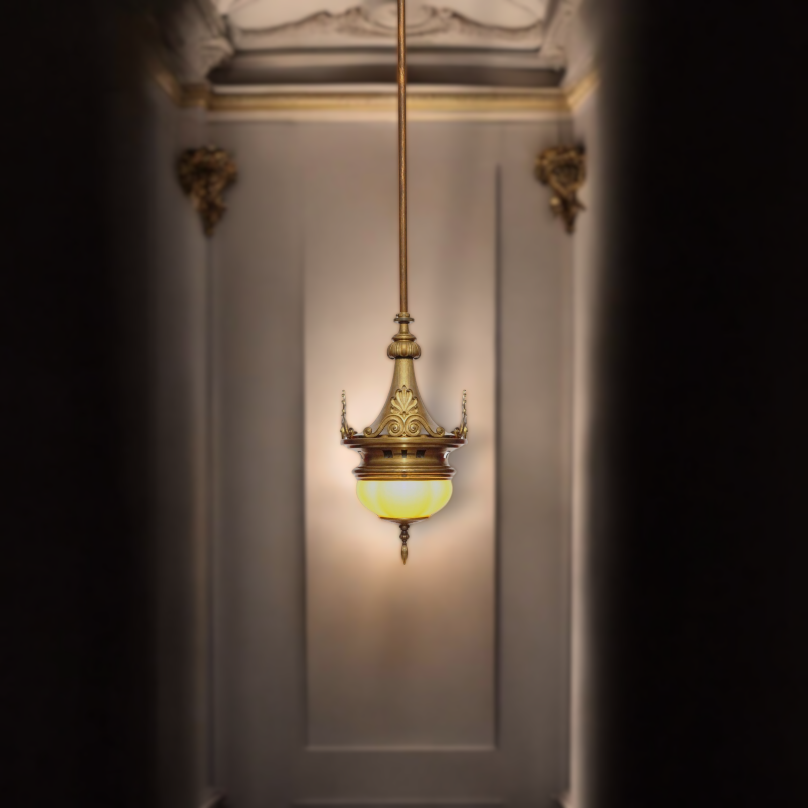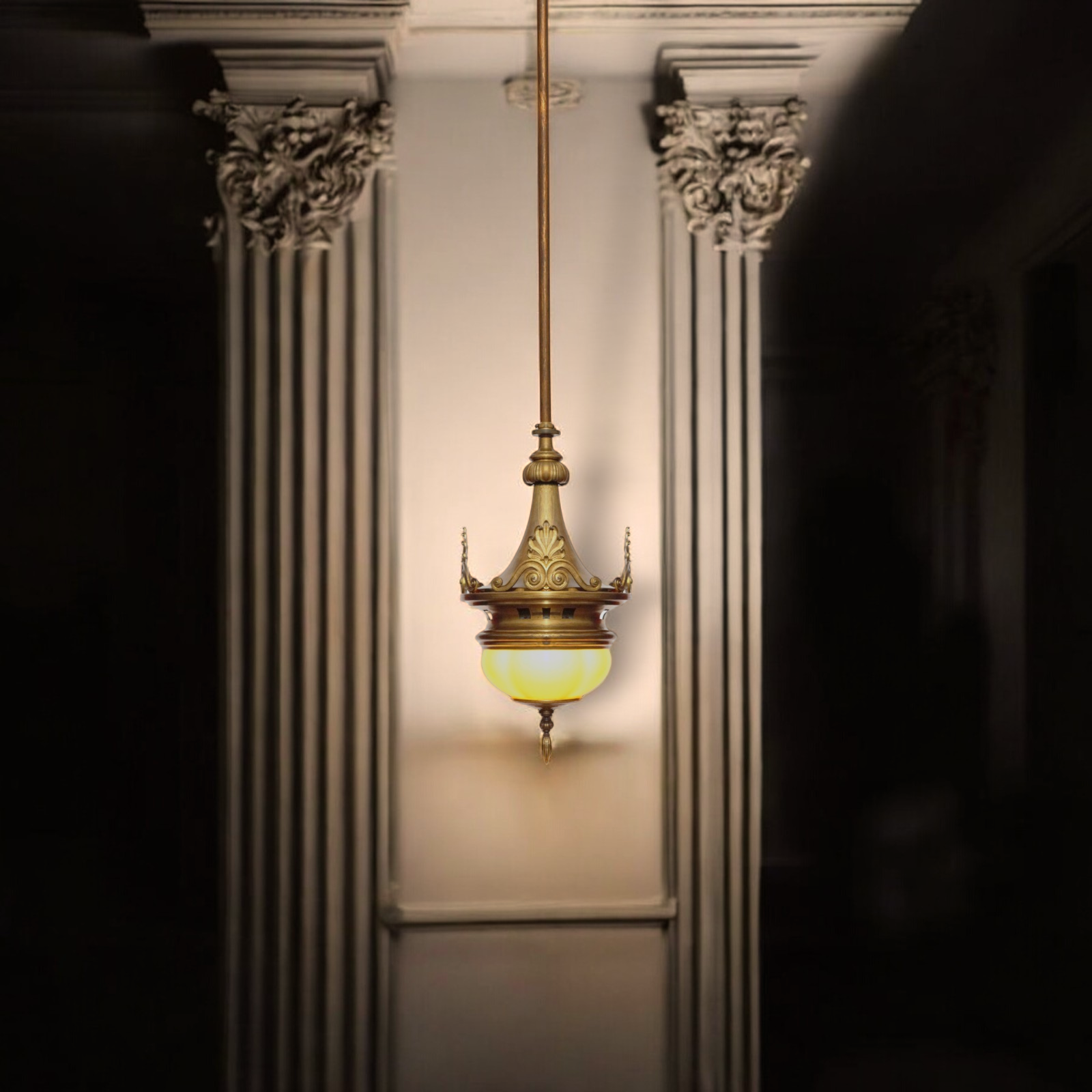 Original Art Nouveau Ceiling Light Flurlaterne 1900 Brass Lamp Hanging Lamp