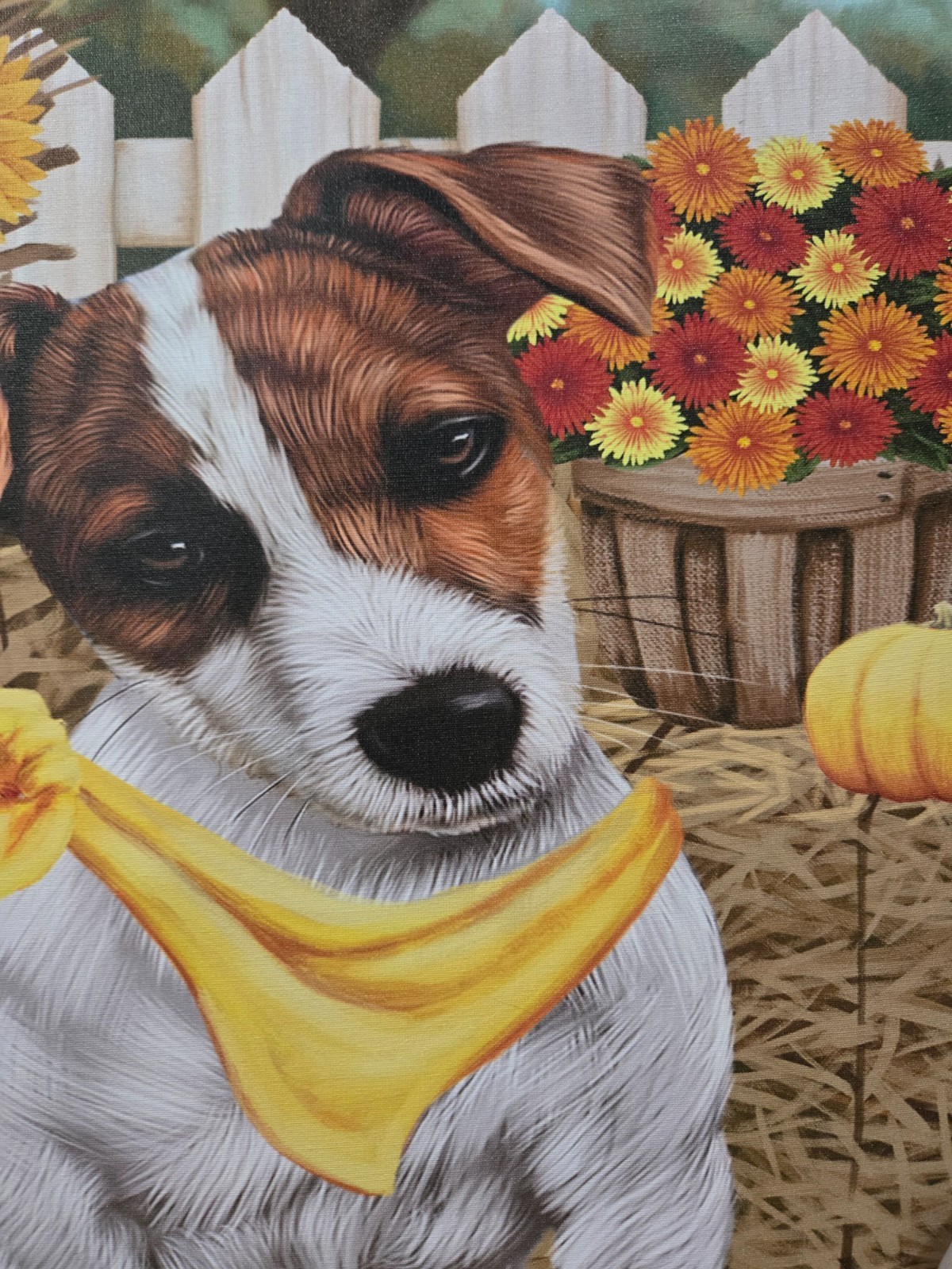 Jack Russell Canvas NEW Fall Pumpkins Sunflowers 16x20 Ready to Hang MSRP: $80