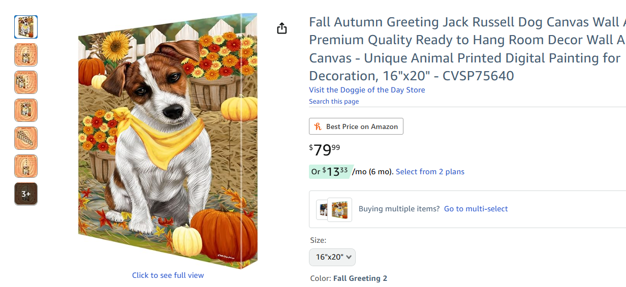 Jack Russell Canvas NEW Fall Pumpkins and 50 similar items
