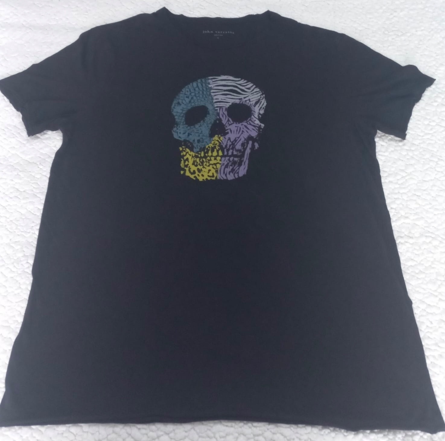 John Varvatos Black Skull Raw Edge Cotton Graphic Tee Shirt Size L NWOT