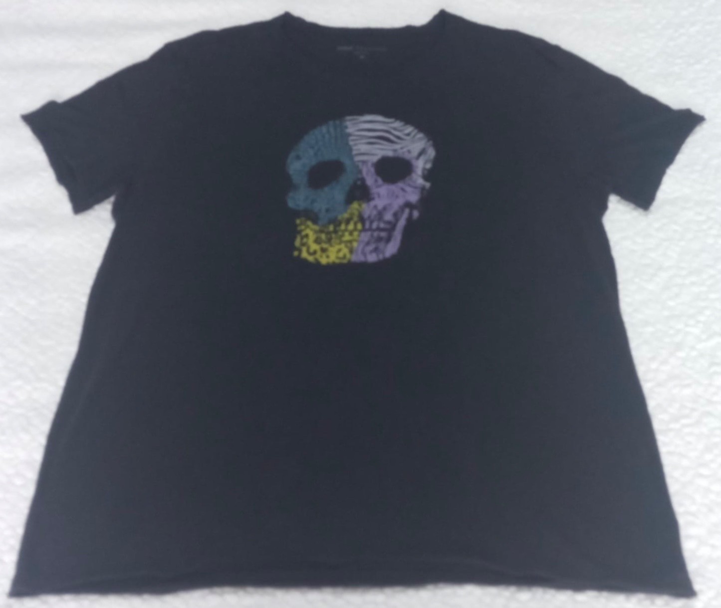 John Varvatos Black Skull Raw Edge Cotton Graphic Tee Shirt Size XL