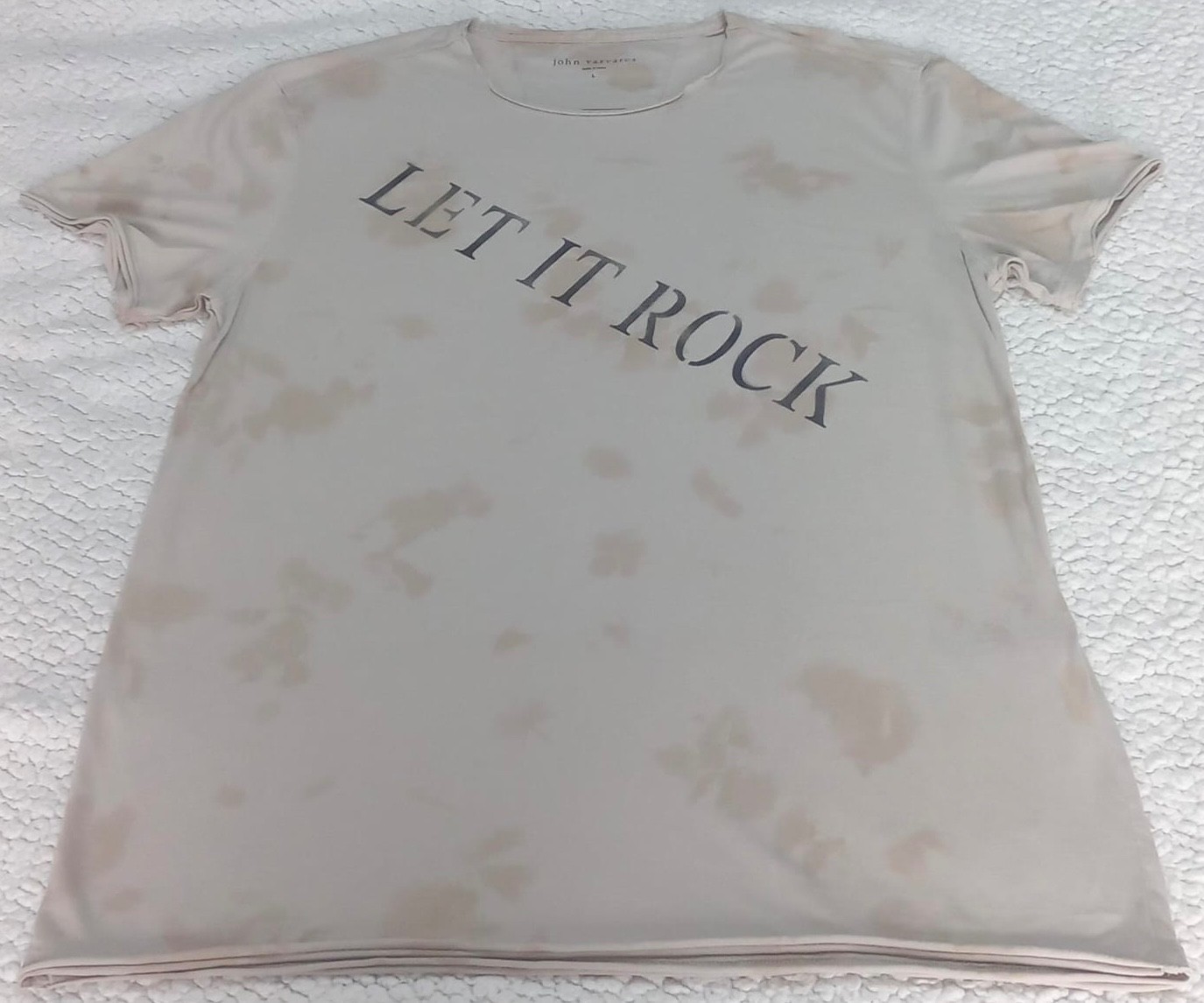 John Varvatos T-Shirt Men Fossil Grey Let It Rock Raw Edge Short Sleeve L NWOT